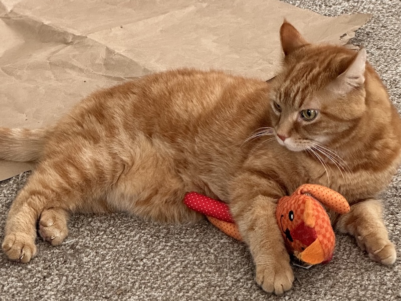 He sometimes was anxious and many things could set him off in retreat. But he was quite inquisitive and enjoyed smelling the outdoors from many of the windows in our house. He even had a couple (unplanned) outdoor adventures, including sauntering out on the rare occasion the door was left ajar. He often engaged aggressively with a neighborhood cat who would taunt him through the window screen, so much so that he recently shoved through the screen and launched himself out after that cat. Two minutes later he responded to our call to come home.