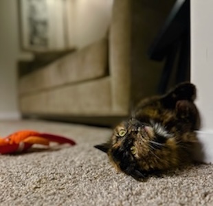 We have had a few neighborhood cats come around since we moved here. Most are skittish and run away if we show up. But one cat was different. She was so friendly that we were pretty sure she belonged to someone and had escaped. Carolyn began putting out food for her and eventually she started to trust us and come into our basement to eat. We then kept her inside and she warmed up to us quickly, purring and playing and happy to hang out. Carolyn posted photos of her on the neighborhood Facebook group but no one knew her. We took her to our vet (where we gave her the name Jane Doe) and we learned that she was neutered but not chipped. We decided to try to find someone to adopt her. Carolyn’s colleague at the park library mentioned that his daughter was looking for a cat, so after a few calls and FaceTimes, Rick packed Jane Doe up and took her to Toledo to make the transfer. She was renamed Soup and now has her forever home. Success!