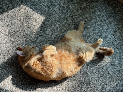 He spent hours on the catio basking in the sun. He watched cat and bird videos attentively. He wrestled with brother Leo and groomed sister Cassie. He was loving and happy and playful and cozy and beautiful.