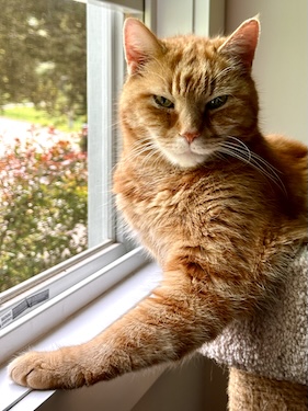 He sometimes was anxious and many things could set him off in retreat. But he was quite inquisitive and enjoyed smelling the outdoors from many of the windows in our house. He even had a couple (unplanned) outdoor adventures, including sauntering out on the rare occasion the door was left ajar. He often engaged aggressively with a neighborhood cat who would taunt him through the window screen, so much so that he recently shoved through the screen and launched himself out after that cat. Two minutes later he responded to our call to come home.